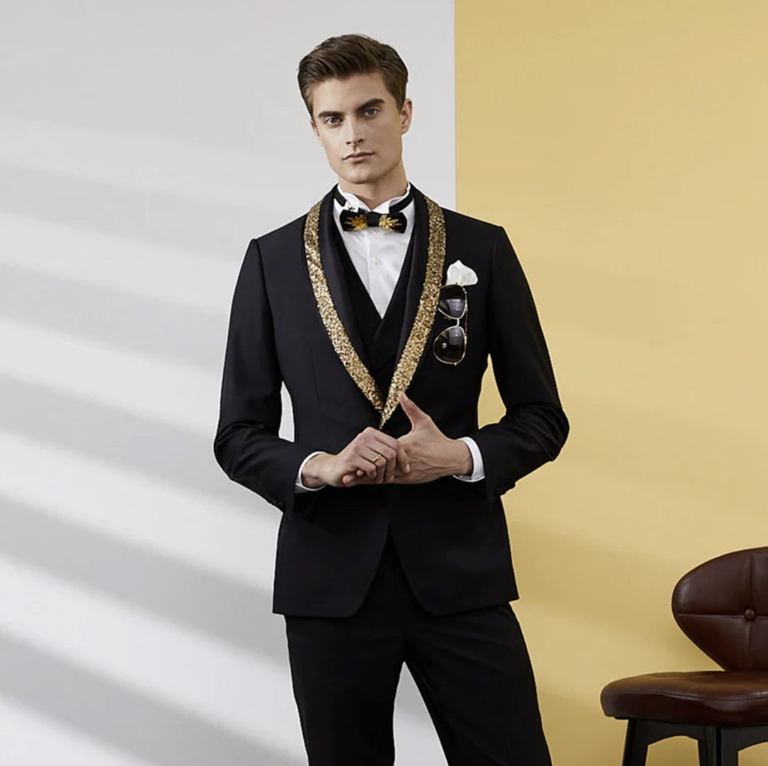 Gothic Series Bowtie (Gold metal/Black fabric)
