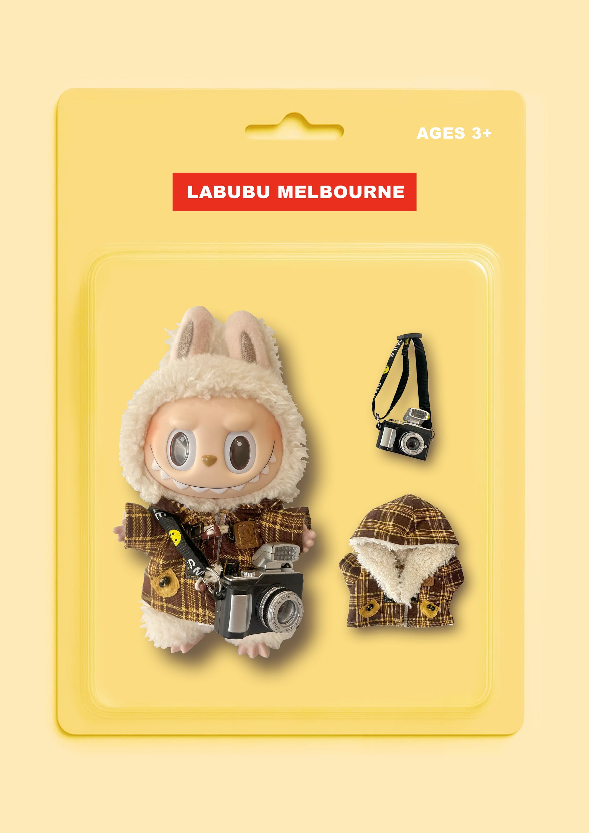 Labubu Autumn Outfit Set - Plaid Jacket & Camera | Cute Retro Style