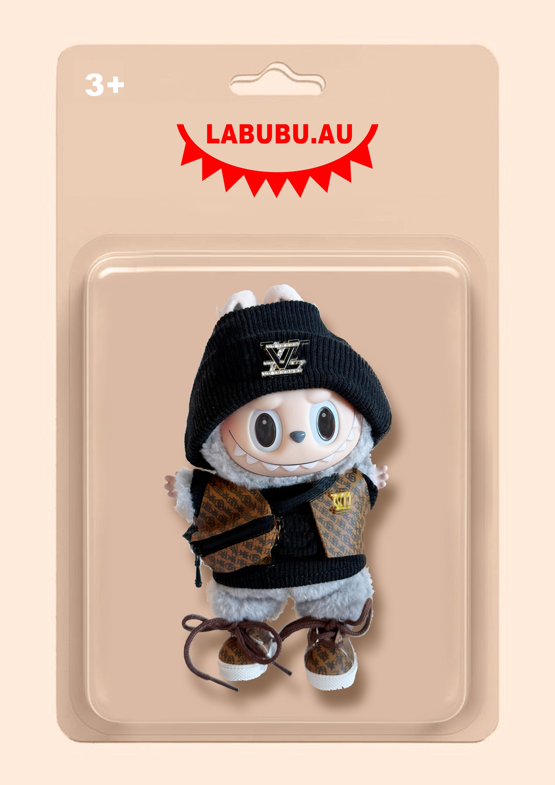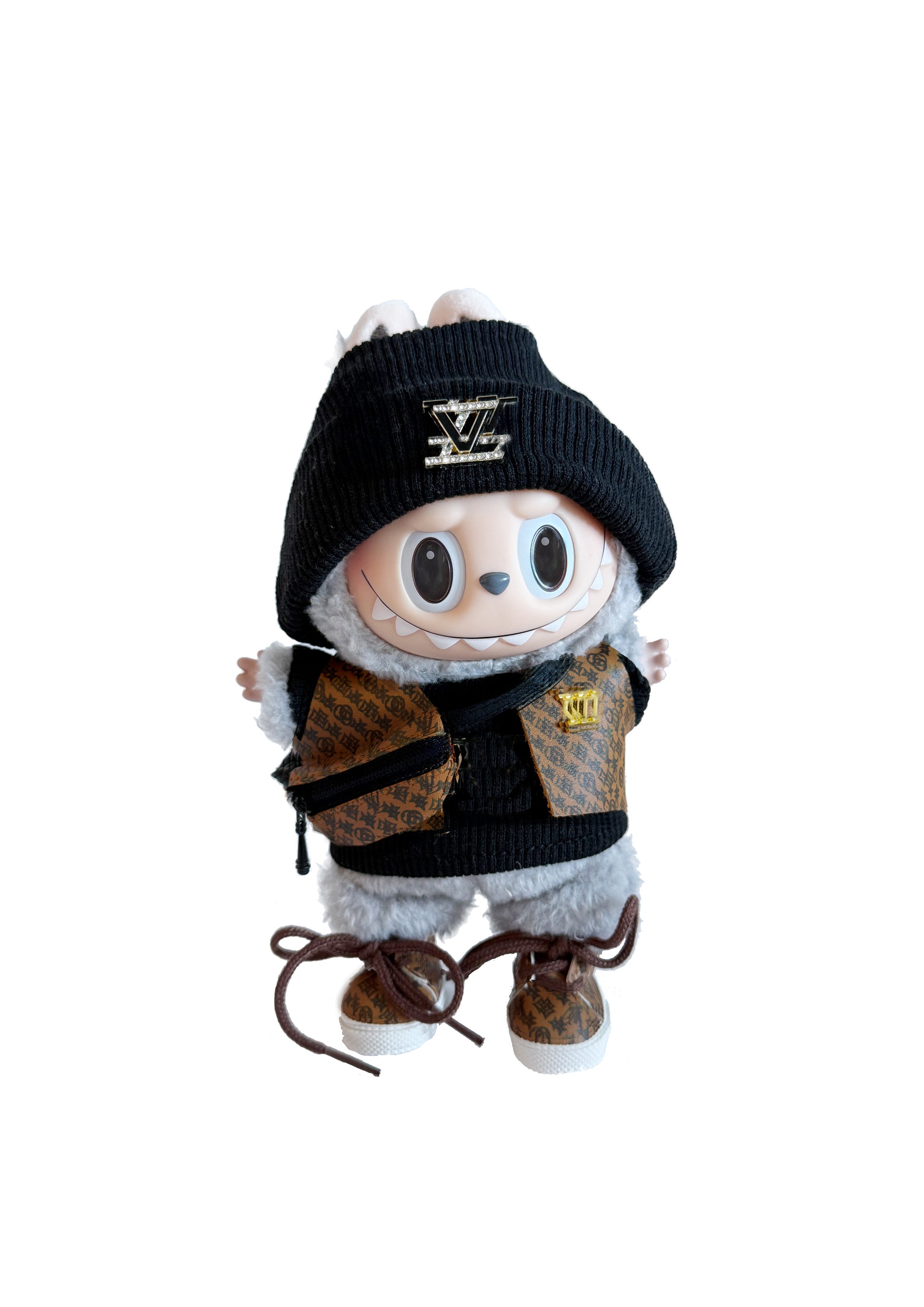 Labubu Outfit โ France inspired Ribbed Tracksuit + Puffer Vest + Brown Lace-Up Sneakers + Waist Bag