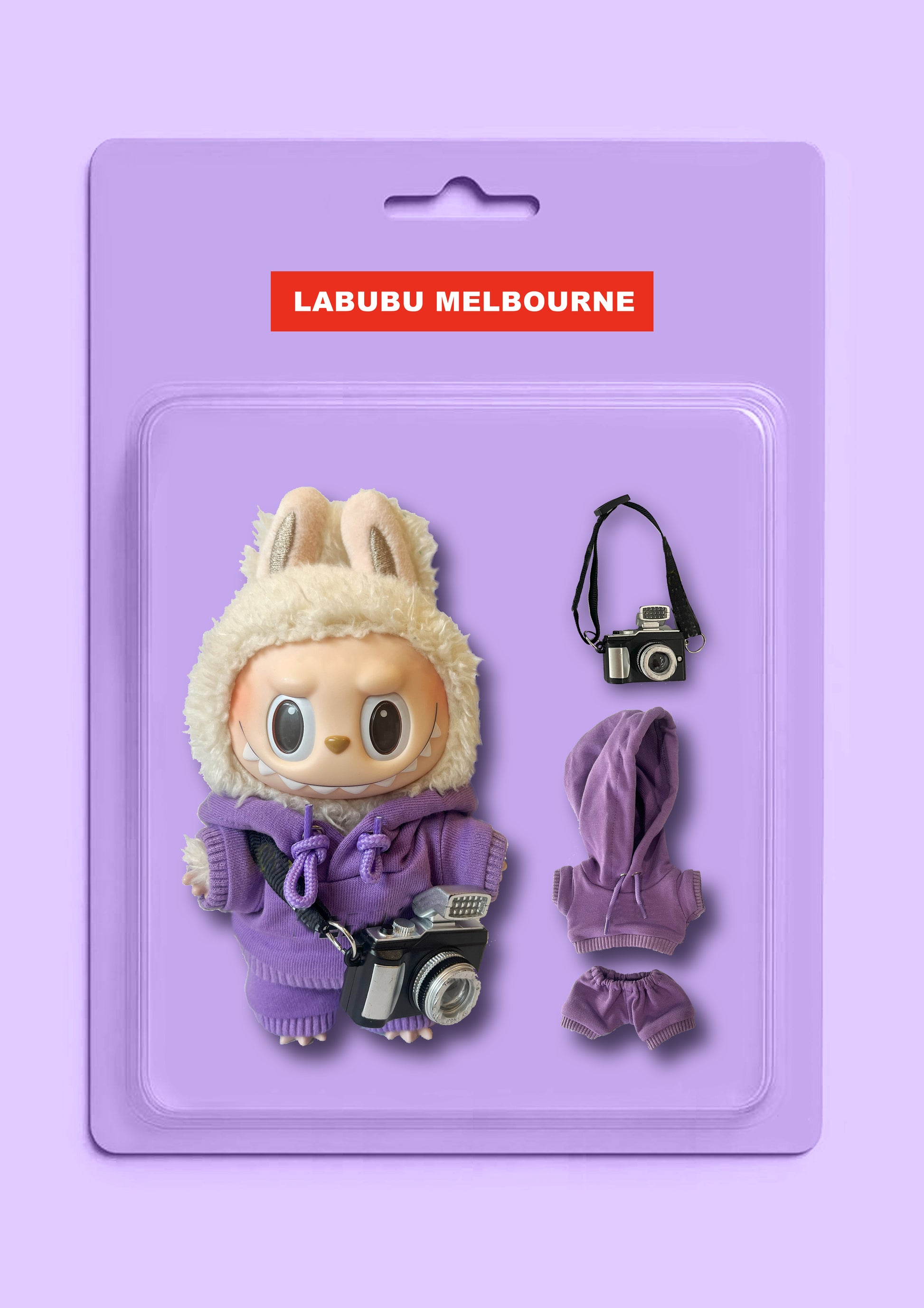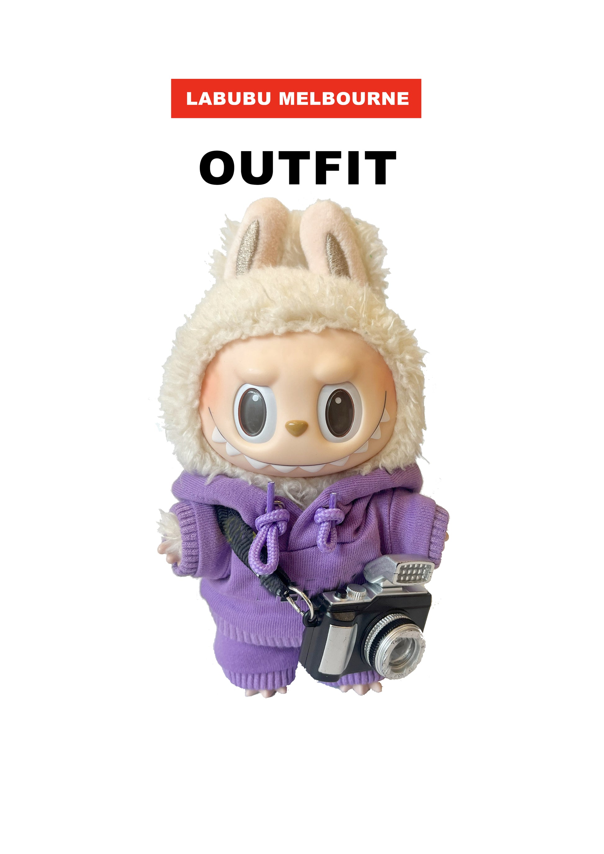 This purple hoodie outfit is designed for Labubu lovers who enjoy casual and playful streetwear styles. The set includes a hoodie and matching pants, perfect for styling, photography, or creative DIY customization.